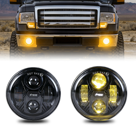 ไฟตัดหมอกสีเหลืองทรงกลมขนาด4.5นิ้ว80W กันชนหน้าดัดแปลงไฟ LED ตัดหมอกเข้ากันได้กับรุ่นฟอร์ด F-150 2006-2014