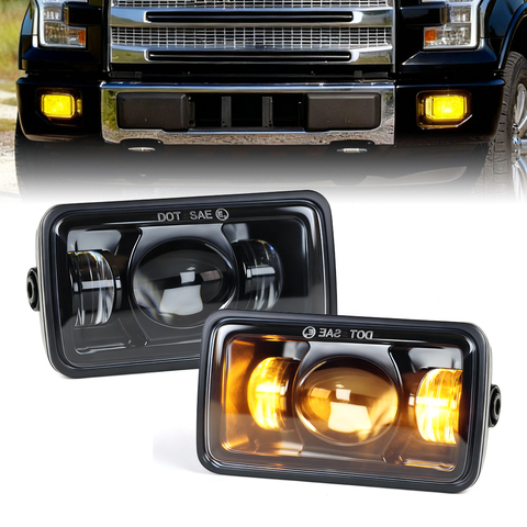 เหมาะสำหรับฟอร์ด F150รุ่น2015-2020 4.5นิ้วชุดไฟตัดหมอก LED สีเหลืองสี่เหลี่ยมขนาด60วัตต์พร้อมชุดประกอบกันน้ำ